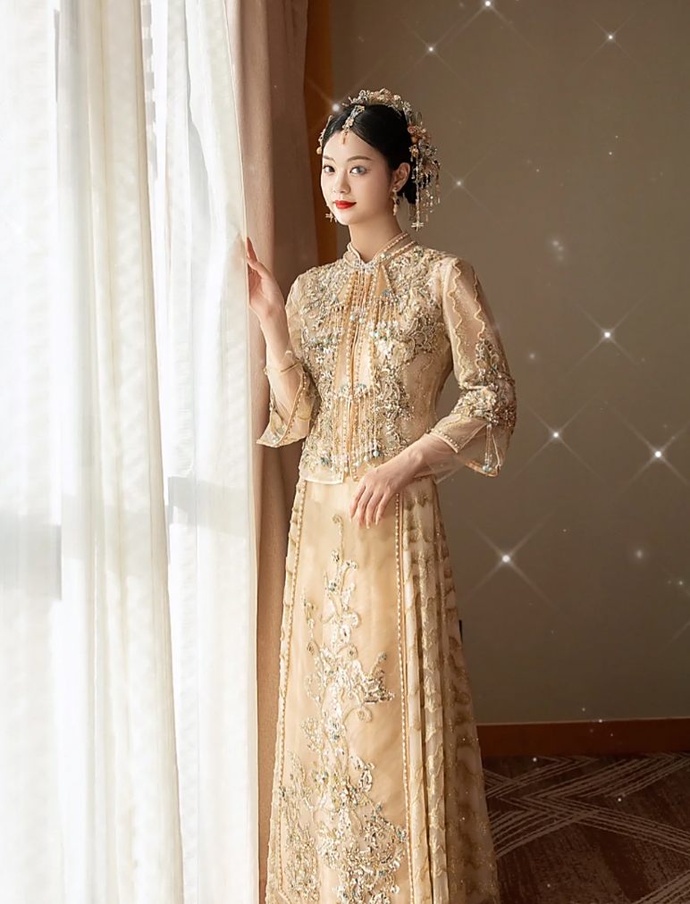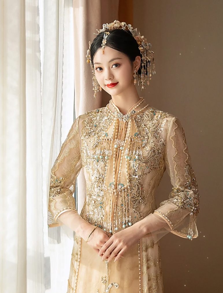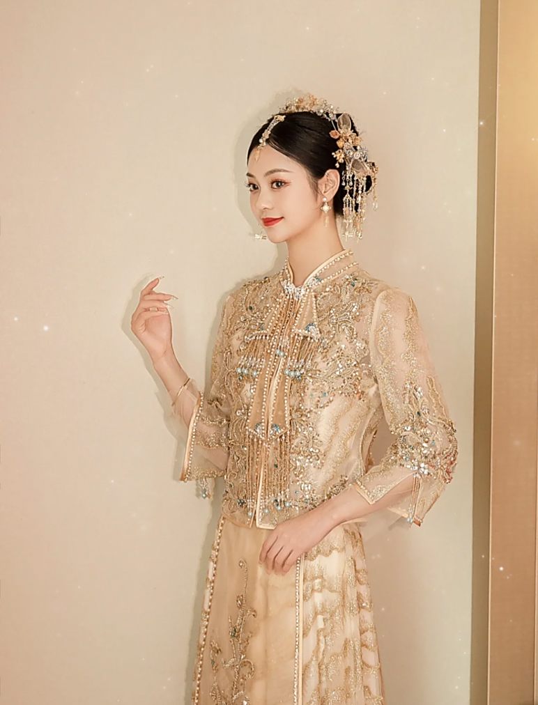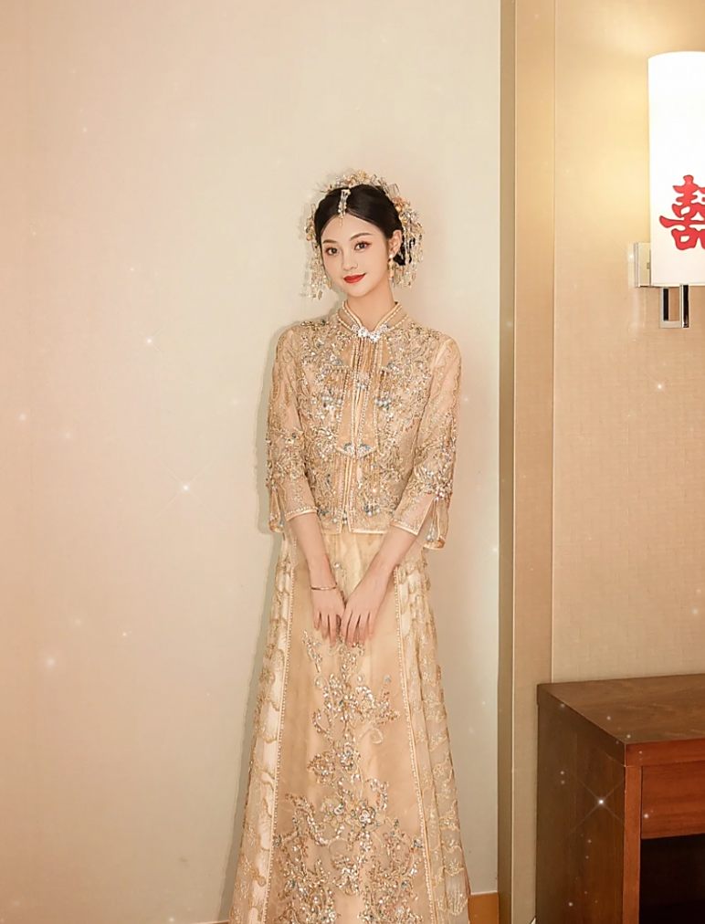 中式结婚礼服 美丽卡洛试穿
